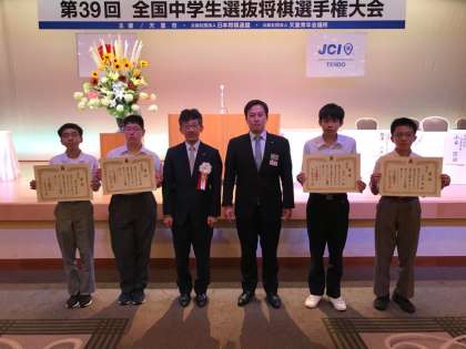 吉報です。昨日山形県にて行われた、 全国中学生選抜将棋選手権大会において1年生の崎原実地歩君が全国準優勝という快挙を成し遂げました。(8月3・4日 山形県 天童市)