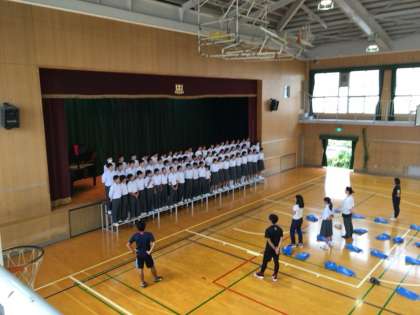 1年生本日6時限目に体育館で文化発表会に向けて合唱の練習を行いました。