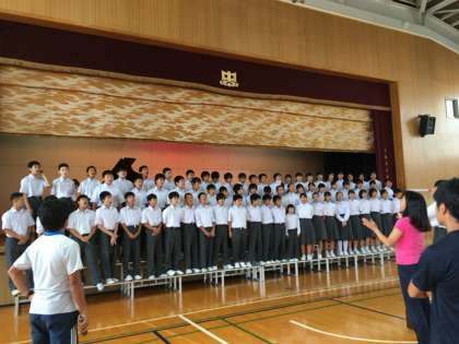 港中学校、1年生が来週の文化発表会を目指して、毎朝の合唱の練習に励んでいます。より良いものにしようと、聞いてくれた人に感動を与えようと、指揮者、伴奏者、全員で取り組んでいま