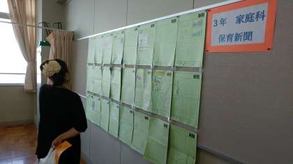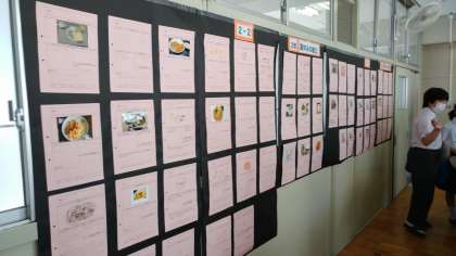 2年「夏休みの献立」、3年「絵本」「保育新聞」などが展示されていました。