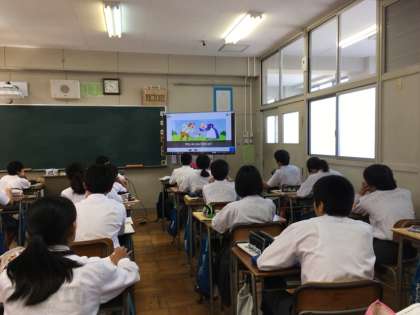 電子黒板(大型モニター)でデジタル教科書を使用しての授業の様子です。