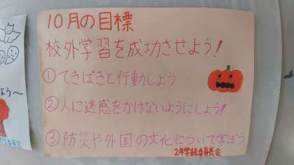 昨日、校外学習に向けて1回目の取り組みが行われ、テスト明けにも数回取り組みが予定されています。みんなの力で校外学習を成功させれるように頑張りましょう!!