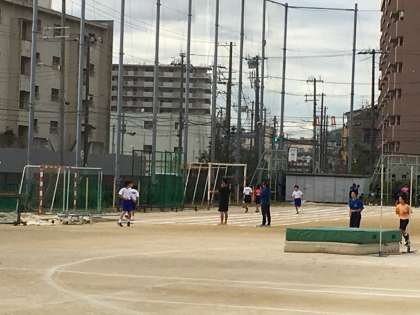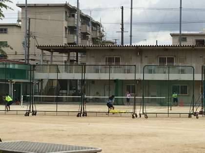 本日も朝から体育館では女子バスケ部とバレー部、運動場では陸上部とソフトテニス部が練習を行っていました。