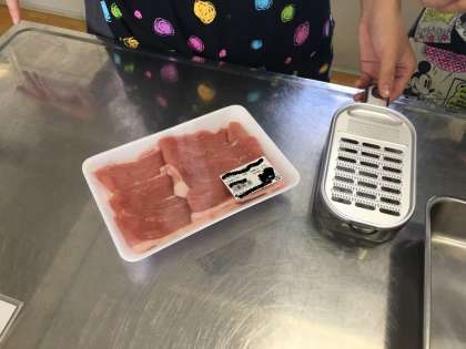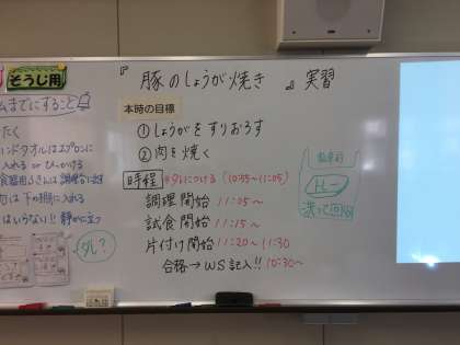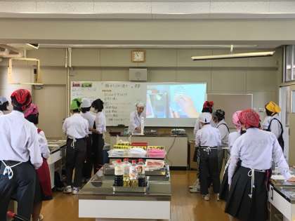 本日、2年1組は「豚のしょうが焼き」の調理実習を家庭科の授業で行いました。