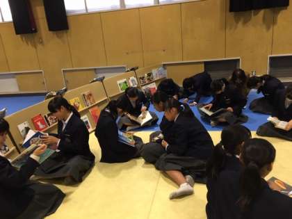 1年生、区役所の方に来校していただき、さまざまな絵本に触れ合う絵本広場を開催していただきました。