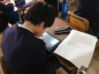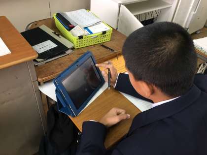 「地震について」の調べ学習をタブレットや資料集を使って行いました。