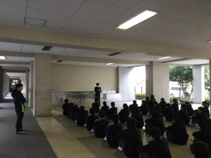 今日の学年集会は8時25分の予鈴で並び、始めることができ、3学期初の学年集会としてはとてもよかったですが、普段の授業の移動など少しルーズなところがあるので、きちんとしていきましょう。また、ほかにも気になるところはありますが、その都度注意などしていきます。注意をされたら素直な気持ちで、きちんとしていくようにしましょう。という話でした。