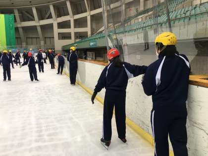 壁につかまりながらや先生に引っ張ってもらいながら滑走をしている生徒もいました!!