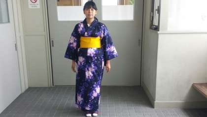 家庭科部が午前中に悪戦苦闘の着付け練習をしました。ほんの一部ですが、完成した浴衣姿をご披露します。ずいぶん上手にできました。職員室からもたくさんの先生方が、感動の拍手を送りました。