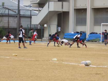 普段なかなかできない高校生と一緒にラグビーをしました。