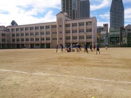 秋の大会で一緒にチームを組む築港中・矢田西中の選手とともに試合をしました。