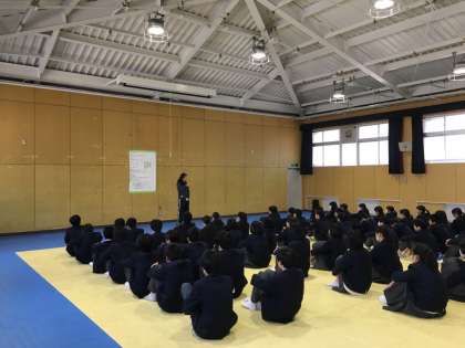 1年間の振り返り、春休み中の勉強・健康・生活面などの話を聞きました。