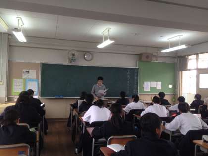 5限目、1学年同時展開です。今日は担任の先生がおこなっています。題材は「裏庭のできごと」です。