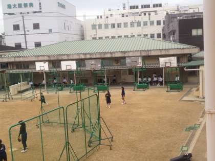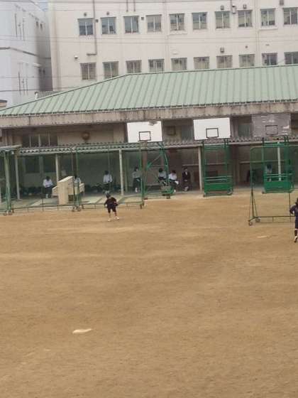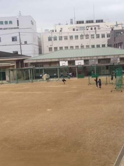 ソフトボール部の奥で、写生をしています。すばらしいです。