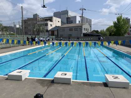 5月2日(木) 水泳部のウォーミングアップの風景です。