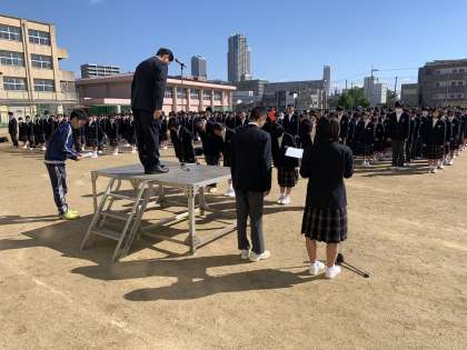 選挙管理委員の生徒を中心に、生徒会役員と協力しながら、認証式を行いました。