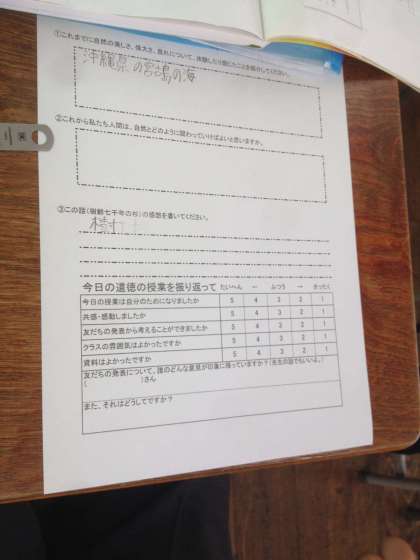 最終は、どのクラスも振り返りシート記入しています。また、他のクラスでは、理科の便覧を用いて、自分の行きたい所を探していました。