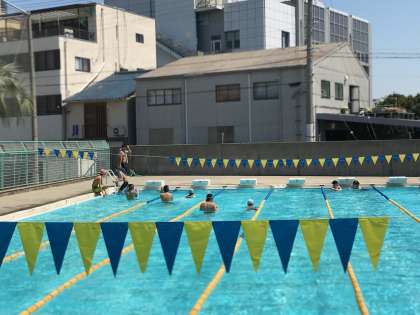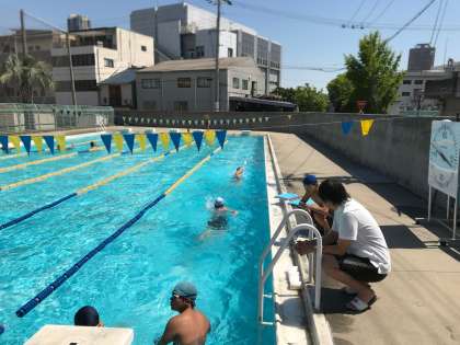 今日の練習は先輩たちが後輩たちに港南中学校水泳部の伝統的なメニューを伝えていました。はじめはなかな上手にはできませんが、少しずつ先輩たちのようにできるようになります。そして、先輩たちのつながりが港南中学校水泳部の宝です。