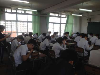 1限、道徳の授業です。全クラス同時教材での展開です。