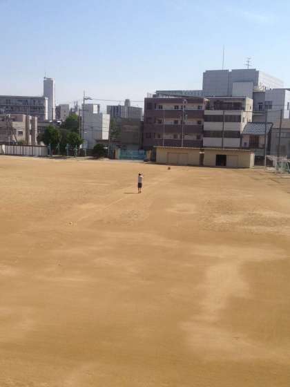 保健体育の先生も空き時間は授業準備をしています。写真はグランドでのライン準備です。