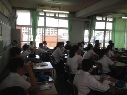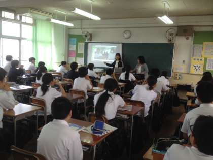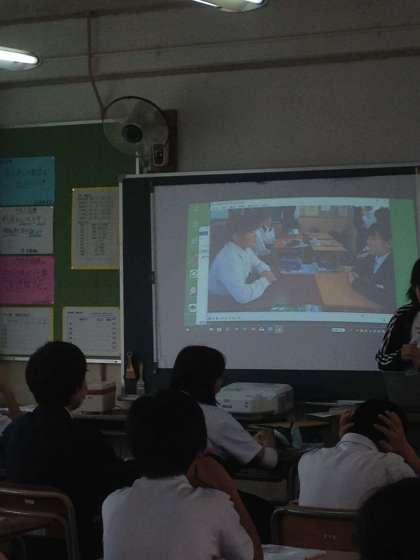 3限目、タブレットを使って、先週録音した自分の発音する声や動画をみて、客観的にとらえています。