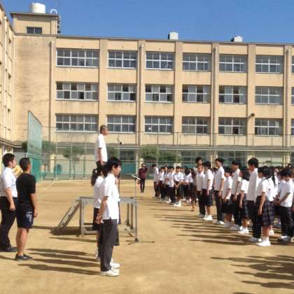 なんと、紙を読まず連絡しています。全校生の前で暗記して連絡する、素晴らしいです。