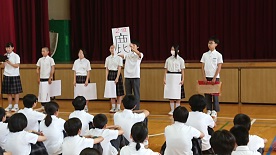 奈良校外学習のまとめとして書いてもらった「この校外学習を漢字一文字で表すと‥‥。」という問いの答えを文化委員会が集約しました。