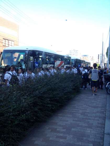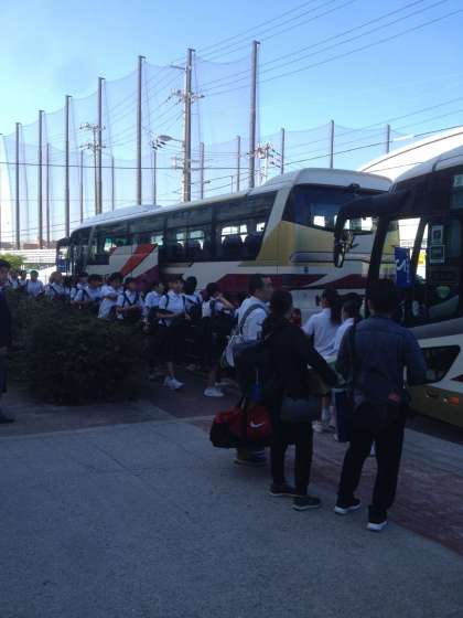 学校からバスにて