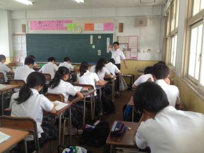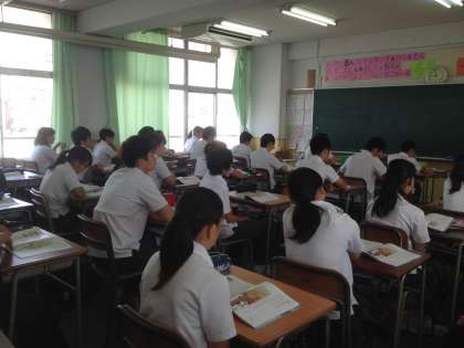 1限、道徳の授業です。なんと、校長先生が授業されています。