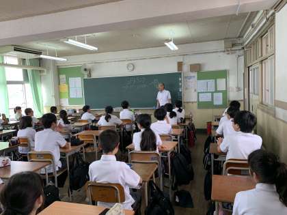 7月10日(水) ヒューマンキャンパス高校の先生に来ていただき、授業をしていただきました。生徒たちに話を聞いてみると、「楽しかった」や「また来てほしい」との意見が多く楽しく考えられる時間をいただけたようです。