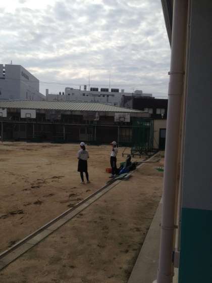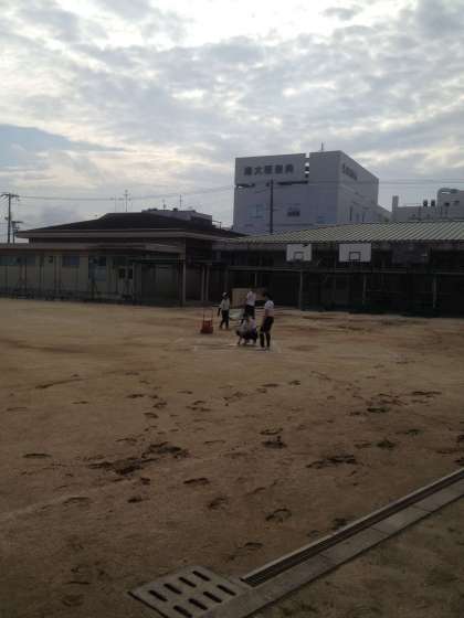 おはようございます。朝からグランドではテニス部とソフトボールが整備をしています。