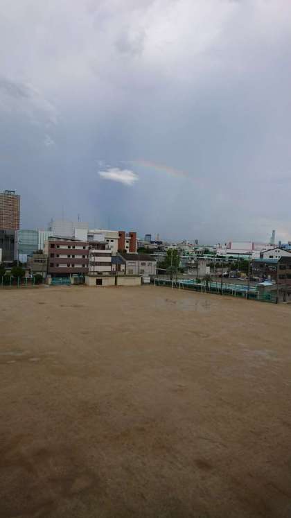 雷鳴がとどろき、車軸を流すような雨が降ったあと、日差しが差し込み、きれいな虹が表れました。