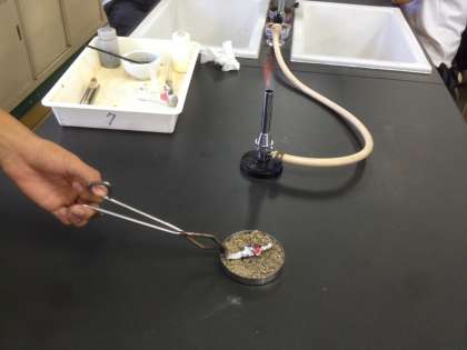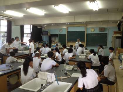 1限、2年3組は理科の実験(硫化水素)をおこなっています。