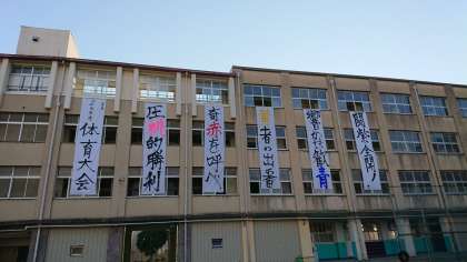 また、夏休みに書道部が書いたスローガンも生徒会が飾ってくれました。