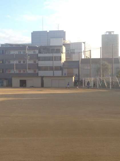 おはようございます、気温は12度です。グランドでは、サッカー部と体育科の先生がライン引き、体育館ではバスケ部、校内では吹奏楽部が朝の練習をしています。