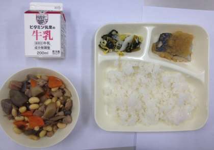 さごしのおろし醤油がけ、五目汁、小松菜の白菜の甘酢あえ、ごはん、牛乳 です。