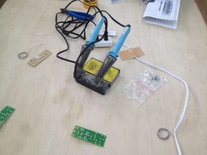 生徒たちは、はんだ付けの行いました。