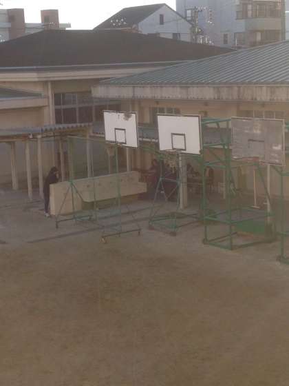 おはようございます。グランドではテニス部が朝の練習をしています。