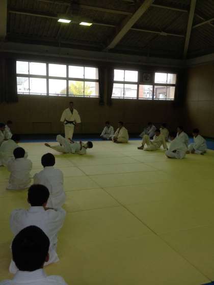 続いて、前回り受け身です。見本の生徒による実演です。