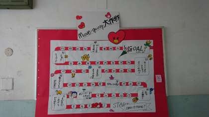委員長からは今のMove quietly大作戦について、全員ではないけれど一部の人がしゃべっていたり、列が広がったりしているので、気をつけてほしいという呼びかけでした。また、ミシュラン方式のチェックにより、毎回の集会の移動を点数化してすごろく形式で掲示板に貼り出していることのお知らせでした。