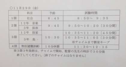 期末テスト最終日、そのあと、避難訓練があります。