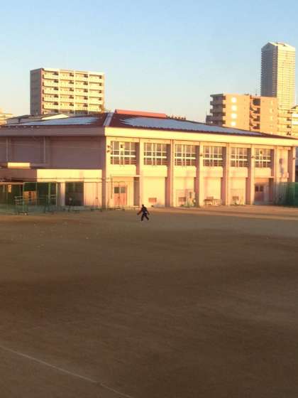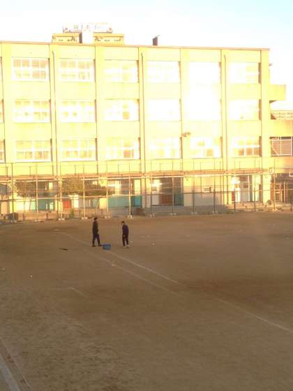 おはようございます。気温は5度です。朝早くから、野球部がグランドで練習しています。