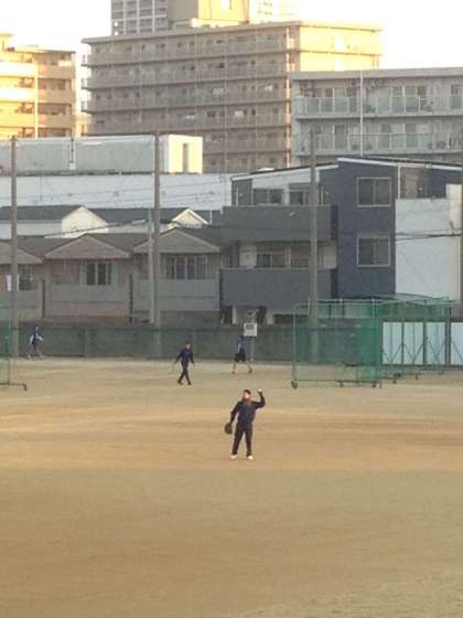 気温は4度です。グランドでは、テニス部と野球部が練習をしています。