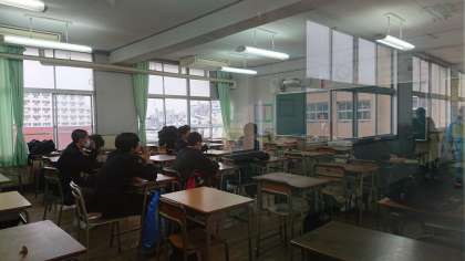 真剣な様子だったので、廊下からガラスごしに写真を撮りました。