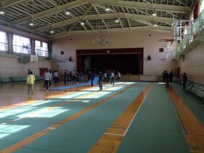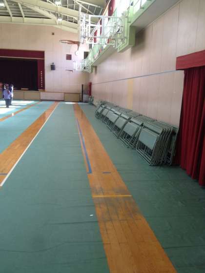 生徒たちのいない学校で、朝から教員たちで会場準備をしています。