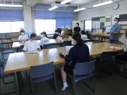 また、1限は図書室を利用しました。本を借りた生徒もいます。