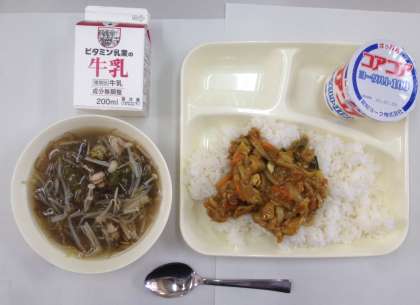 和風カレー丼、もずくとオクラのとろり汁、ヨーグルト、牛乳 です。
