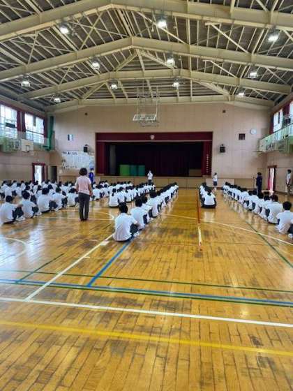 教室からしっかり整列して、おしゃべりなしで移動できています。