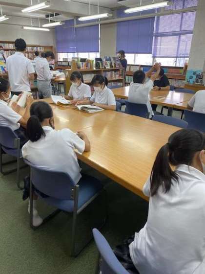 昼食後、図書室を開館しています。多くの生徒が利用しています。