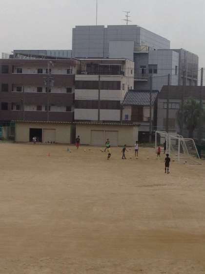 グランドではサッカー部とソフトテニス部が練習をしています。顧問の先生、朝早くからありがとうございます!
